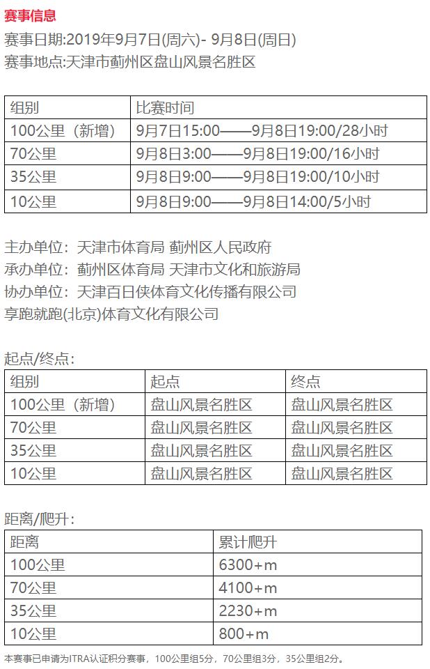 赛事简章 | 2019天津盘山国际越野挑战赛竞赛规则